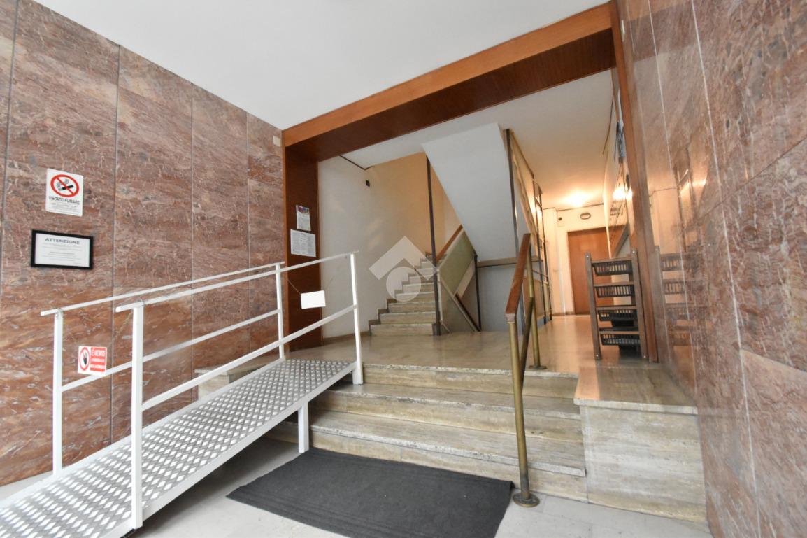 Lo stabile, un bel palazzo degli anni '60, in buone condizioni manutentive e dotato di ascensore, si trova a pochi passi dal Corso Italia in una tranquilla via a senso unico con facilità di parcheggio.